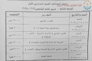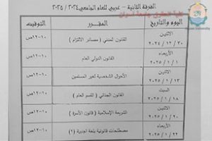 First semester exam schedule, exams are scheduled to start on [Saturday, corresponding to December 28] and continue until [January 22]. The schedule has been published on the official website of Faculty of Law to facilitate access by students.