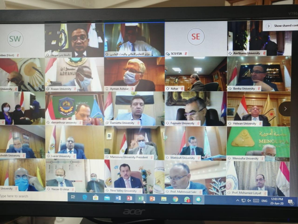 وفى بداية الجلسة اطمئن الوزير من السادة رؤساء الجامعات علي انتظام سير عملية تقييم طلاب سنوات النقل وفقًا للقواعد والإجراءات التي سبق وأن أقرها المجلس الأعلى للجامعات وكذا علي آخر استعدادات الجامعات لإجراء امتحانات الفرق النهائية للكليات بالفصل الدراسي الثاني للعام الجامعى 2019/2020 علي أن تبدأ أعمال امتحانات السنوات النهائية بكافة الجامعات والمعاهد إعتبار من 1/7/2020 ويترك لمجالس الجامعات اعتماد مواعيد وجداول امتحانات الفصل الدراسى الثاني بالكليات المختلفة بالجامعة وفقا لظروف كل جامعة على حدة