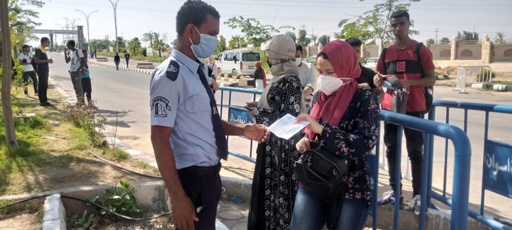 تابع اليوم الدكتور/ أيمن عثمان رئيس جامعة أسوان تنفيذ قرارات مجلس الوزراء ووزارة التعليم العالي والبحث العلمي بعدم السماح للطلاب وأعضاء هيئة التدريس ومعاونيهم وجميع العاملين ومنتسبي الجامعة بدخول الجامعة إلا بعد تقديم شهادة تُثبت الحصول على اللقاح وذلك حرصا علي صحة وسلامة الجميع.