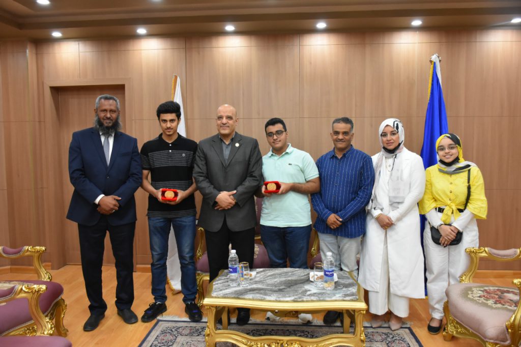 كما قدم سيادته أجمل وأرق التهانى القلبية لكلا من الطالب محمد هانى محمد أحمد مدرسة السلام أكاديمى والطالب عبد الله أيمن محمد سمير رضوان مدرسة أحمد طه حسين بعد حصولهم على المركزين الثالث و الرابع فى القائمة النهائية لأوائل الثانوية العامة على مستوى الجمهورية شعبة علمى رياضة ولجميع طلاب الثانوية العامة الناجحين متمنيا لهم دوام التوفيق والنجاح وقدم لهما درع الجامعة وحثهم علي التفوق وتحقيق المراكز الأولي العملية.