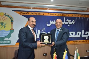 كما قدم مجلس جامعة أسوان درع الجامعة للواء أشرف عطية محافظ أسوان تقديرا لدور المحافظة في دعم الجامعة وتبرع المحافظة بعدد 13 حضانه للمستشفي الجامعي بأسوان.