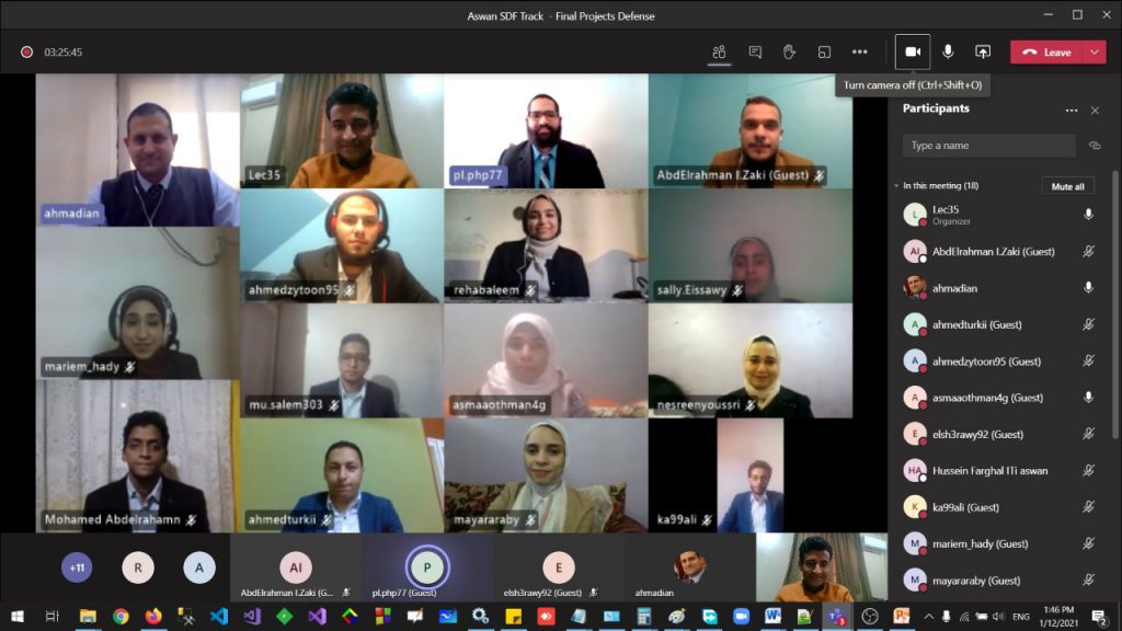 تم بحمد الله يوم الثلاثاء من هذا الأسبوع عقد اليوم الأول لمناقشة مشروعات التخرج للدارسين من طلاب معهد تكنولوجيا المعلومات Information Technology Institute – ITI وذلك في تخصص Software Engineering Fundamentals عبر تقنية الفيديو كونفرنس وكانت المناقشات تحت إشراف م. أحمد سالم – مدير مركز إبداع مصر الرقمي بأسوان، وبحضور كل من د. محمد عيد – مدير مركز المعلومات وشبكة الإتصالات بجامعة أسوان و م. أحمد صلاح مدير مركز إبداع مصر الرقمي بقنا.