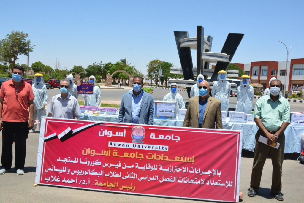 قام الأستاذ الدكتور أحمد غلاب محمد رئيس جامعة أسوان اليوم الأحد بمتابعة استعدادات الجامعة للامتحانات الفصل الدراسي الثاني للفرق النهائية للبكالوريوس والليسانس والتي من المقرر أن تبدا يوم الثلاثاء القادم في عدد من الكليات وتستكمل باقي أعمال الامتحانات بمختلف الكليات اعتبارا من 11/يوليو الجاري 2020 والتي يؤديها 7 آلاف طالب وطالبة بالفرق النهائية بمختلف كليات الجامعة وايضا طلاب الدراسات العليا والماجستير بالمعهد الافريقي للبحوث و دول حوض النيل المقرر اقامتها خلال شهر أغسطس القادم.